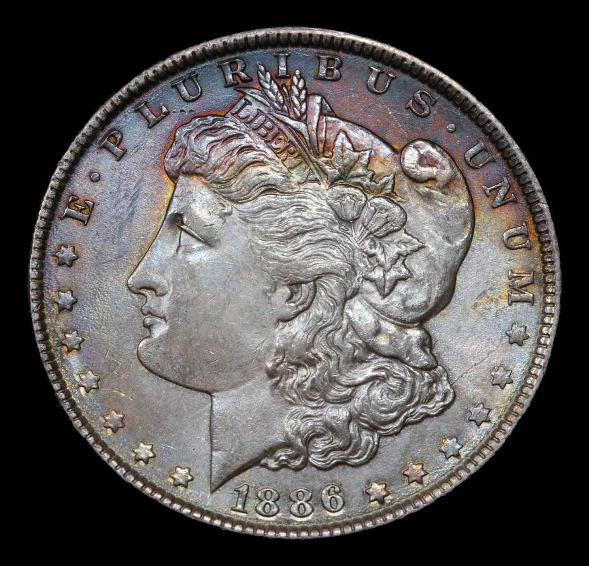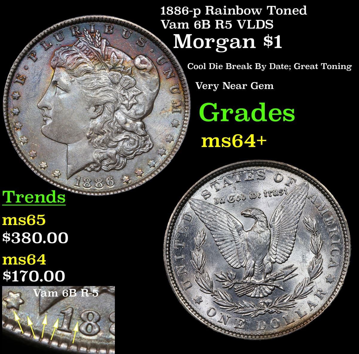 1886-p Rainbow Toned Vam 6B R5 VLDS Morgan Dollar $1 Grades Choice+ Unc.