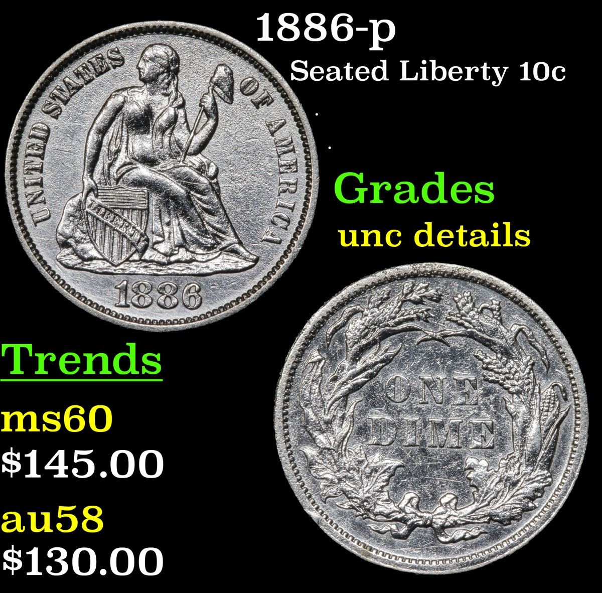 1886-p . . Seated Liberty Dime 10c Grades Unc Details.
