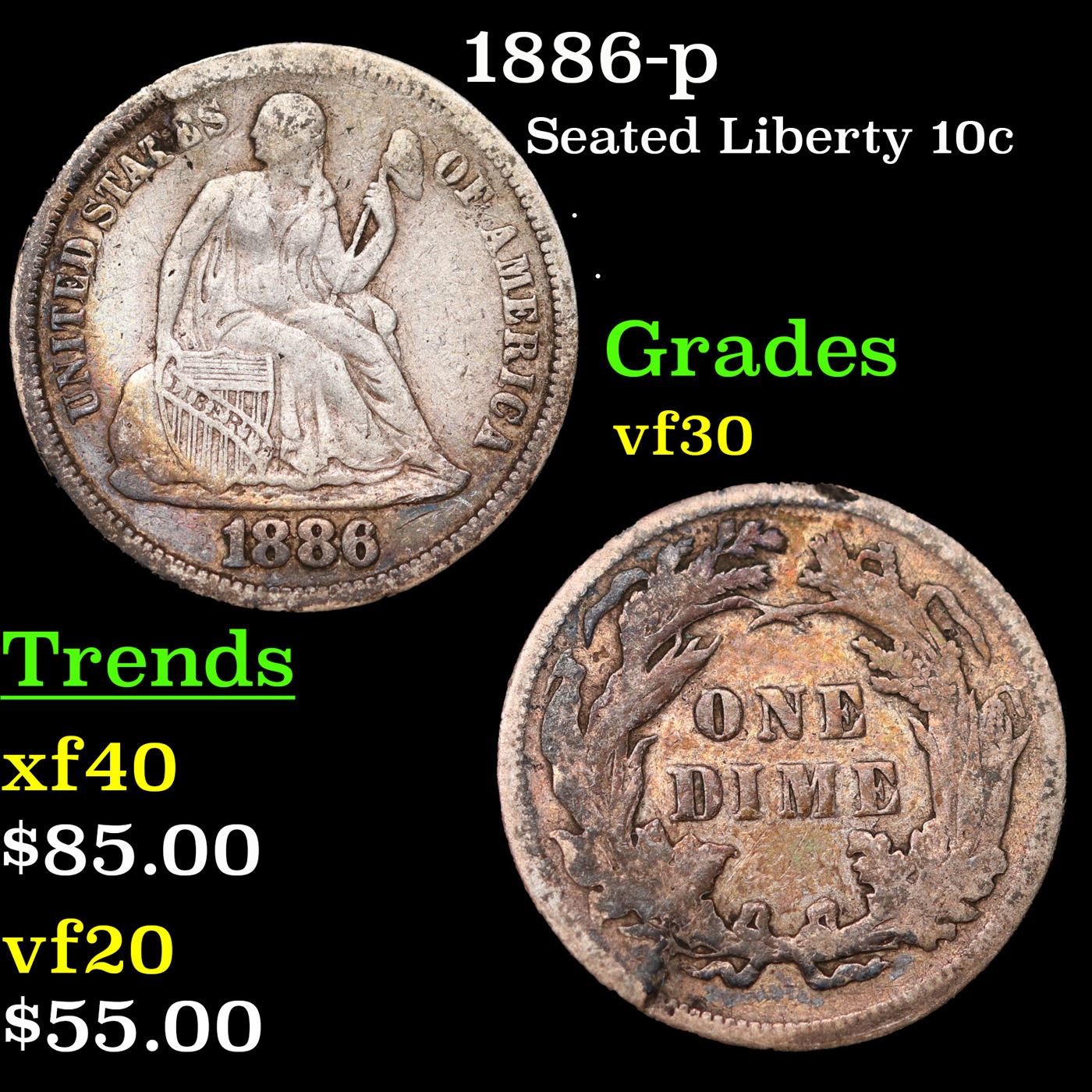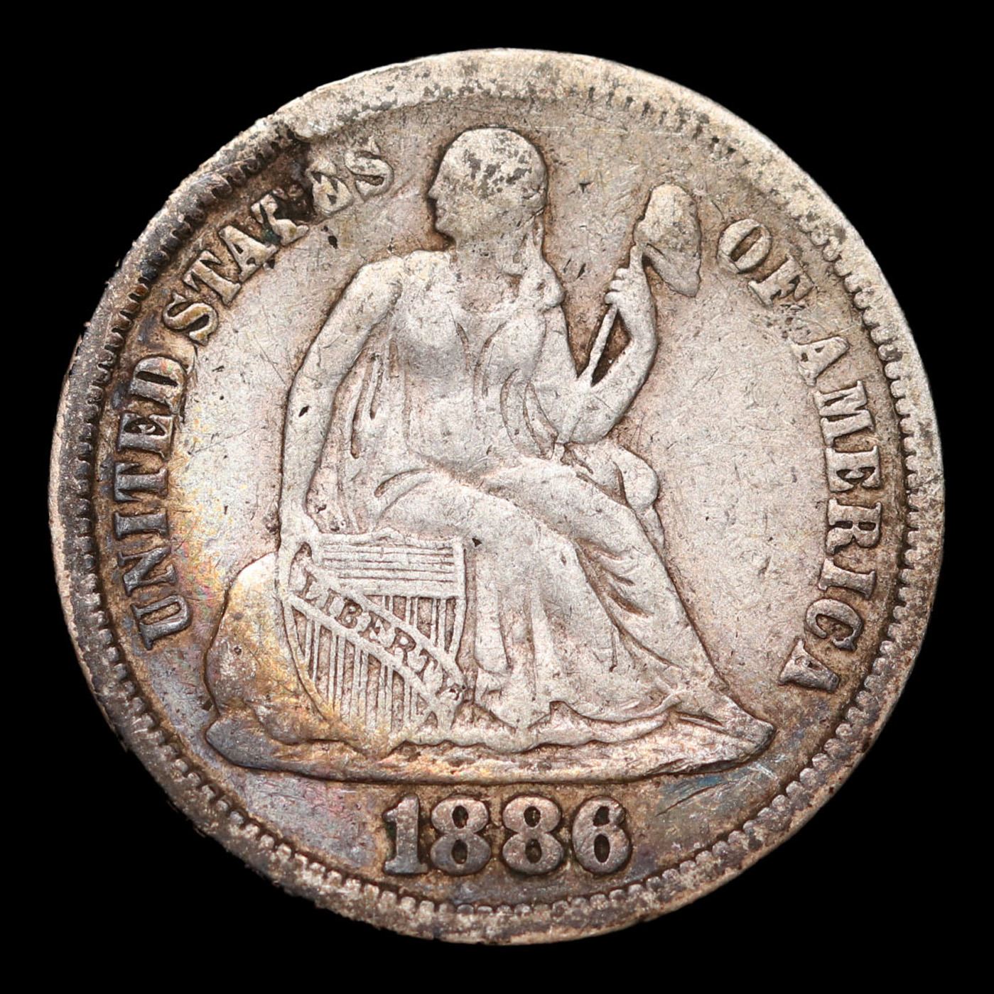 1886-p Seated Liberty Dime 10c Grades vf++.