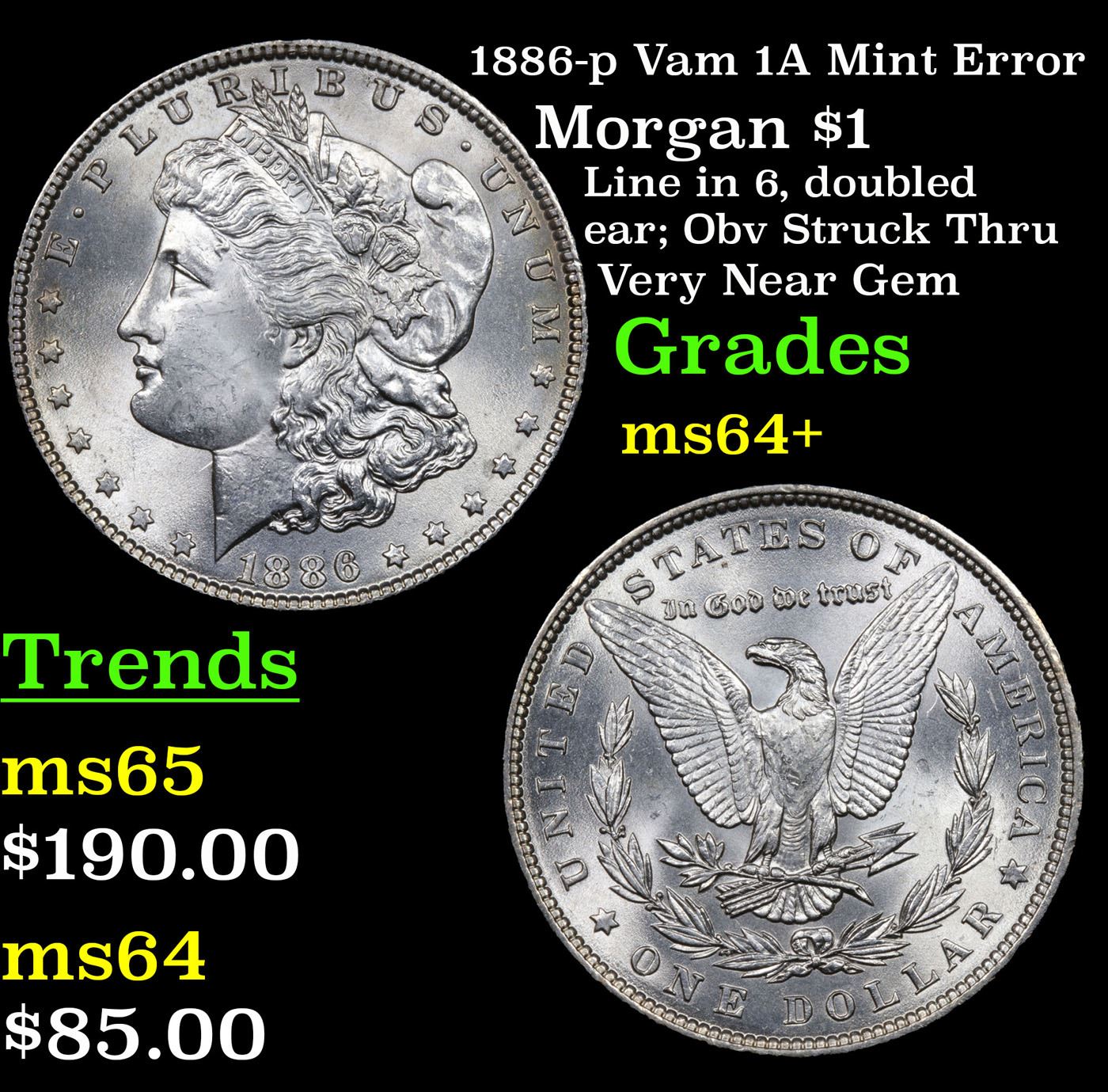 1886-p Vam 1A Mint Error Morgan Dollar $1 Grades Choice+ Unc.