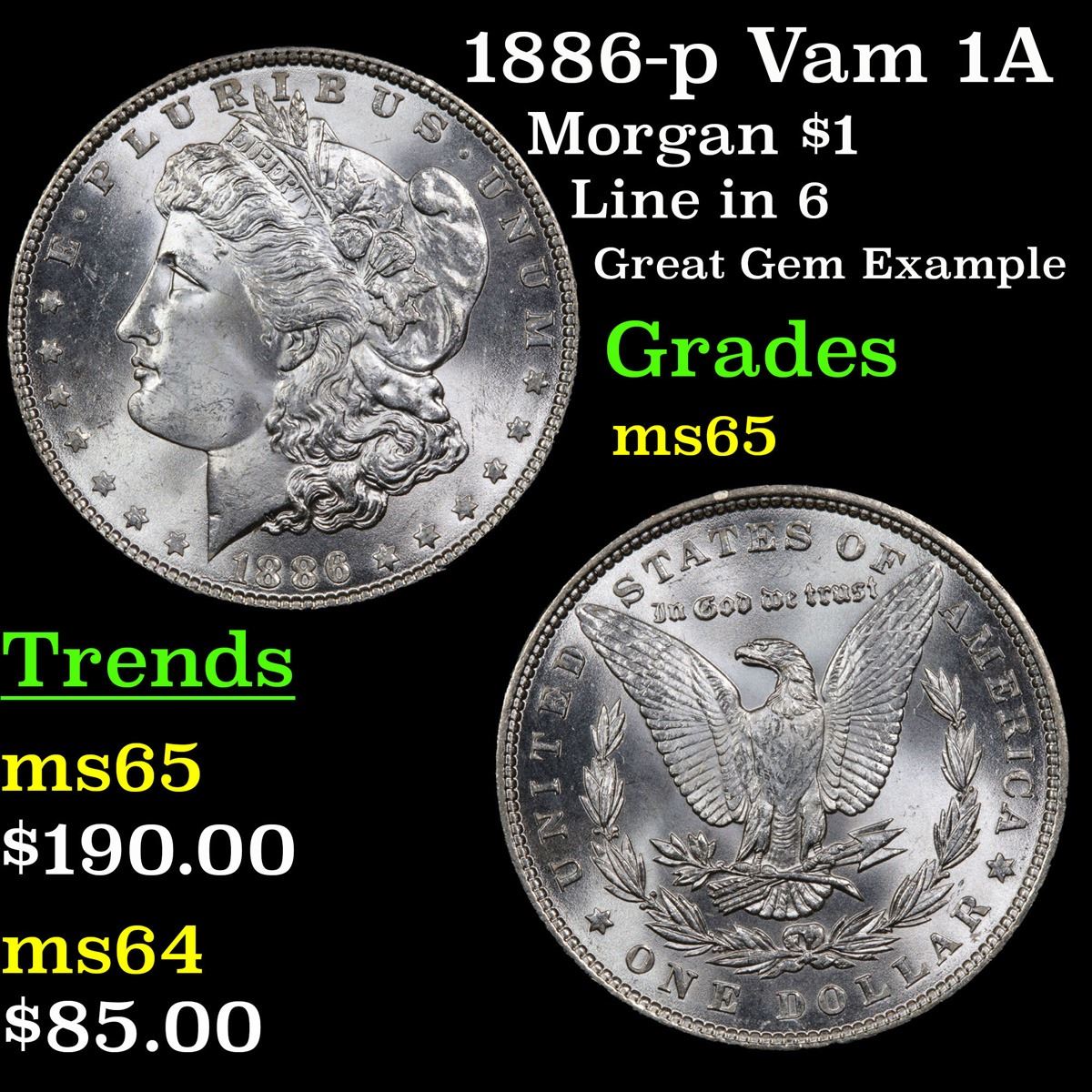 1886-p Vam 1A Morgan Dollar $1 Grades GEM Unc.