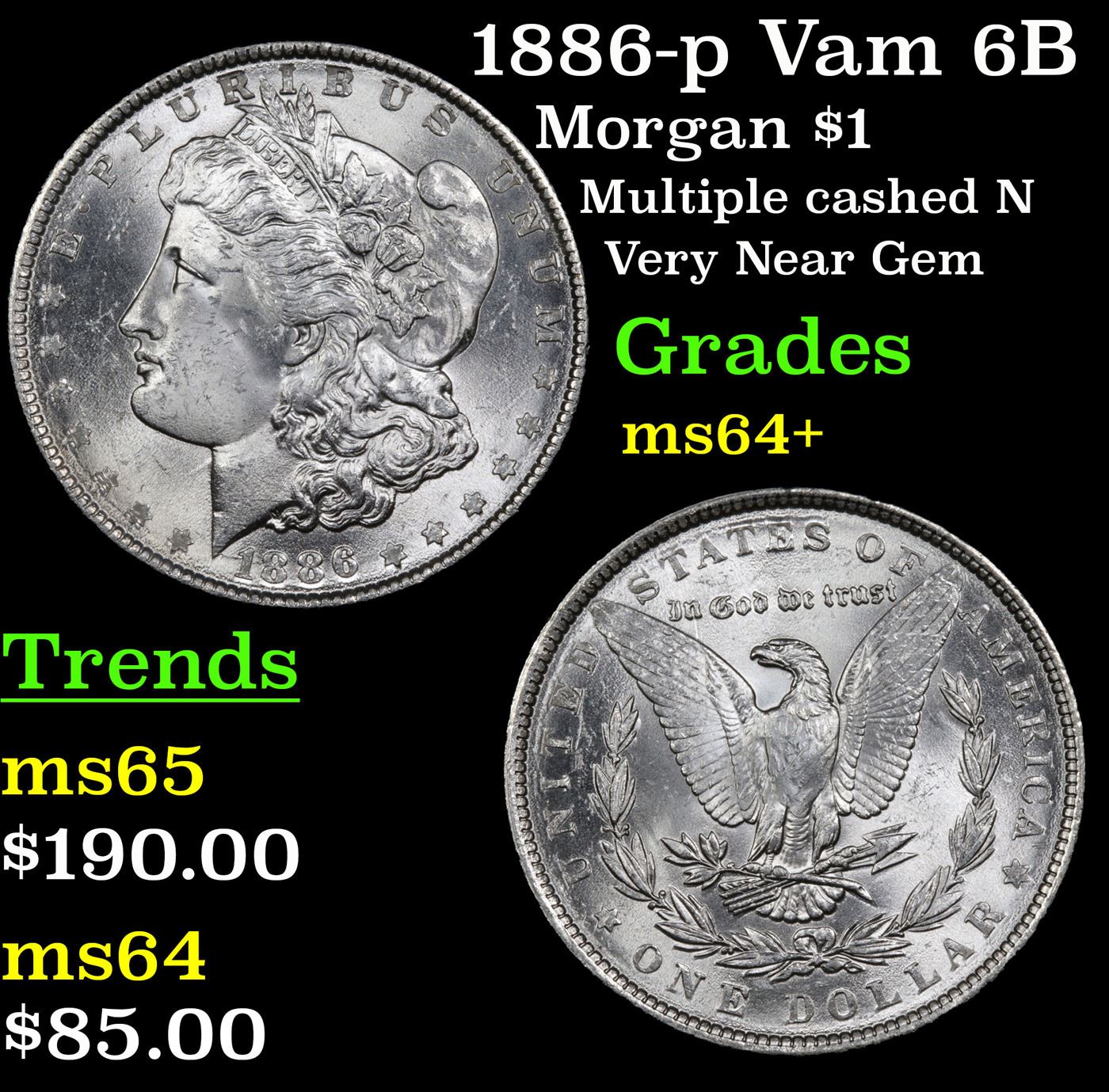 1886-p Vam 6B Morgan Dollar $1 Grades Choice+ Unc.