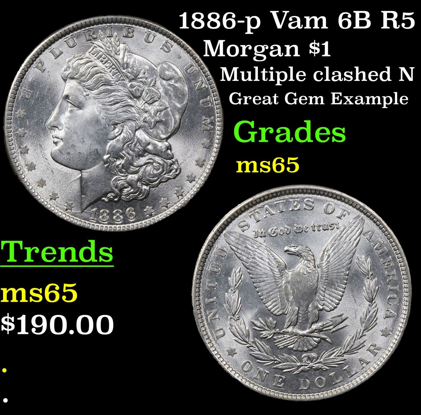 1886-p Vam 6B R5 Morgan Dollar $1 Grades GEM Unc.