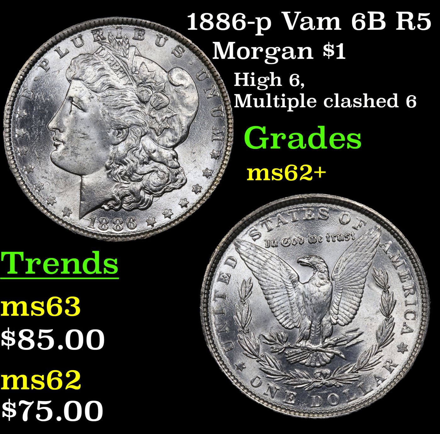 1886-p Vam 6B R5 Morgan Dollar $1 Grades Select Unc.