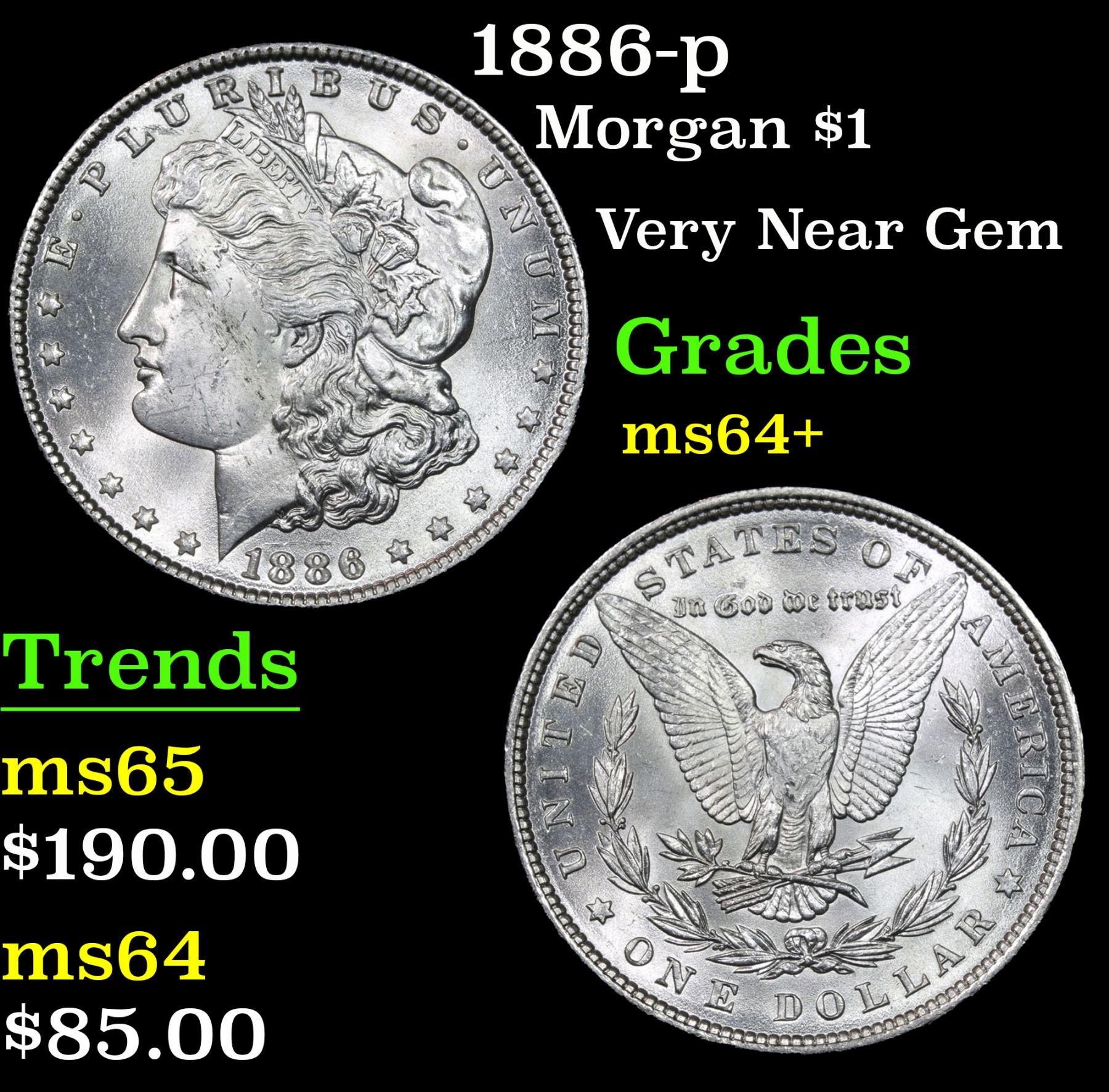 1886-p . Very Near Gem Morgan Dollar $1 Grades Choice+ Unc.