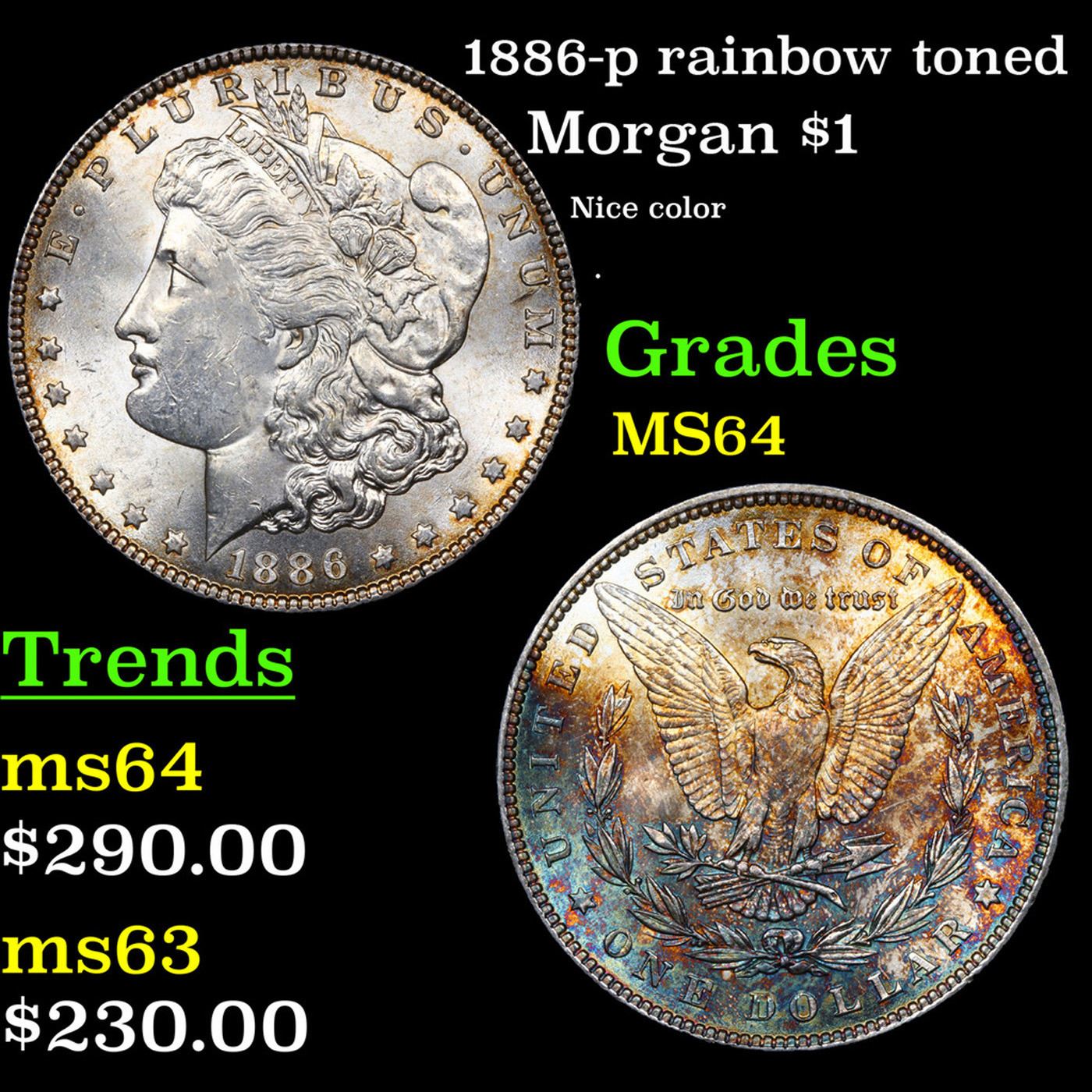 1886-p rainbow toned Morgan Dollar 1 Grades Choice Unc.