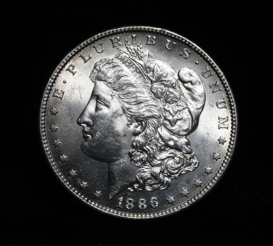 Stunning Luster, Superior eye appeal. A Great Choice Uncirculated Example of this very rare issue. Underappreciated Date. Only 750k Minted, over 10 million minted of the similarly valued 1886-o. 1/10 of 1% of all Morgan's minted were 1886-s. Lower Mintage than 1879-cc. Coin World's Coin Values lists ms64 at $750 and ms65 at $3200. The Wholesale Greysheet Value lists ms64 at $700 and ms65 at $2550. Estimated Value $1000.