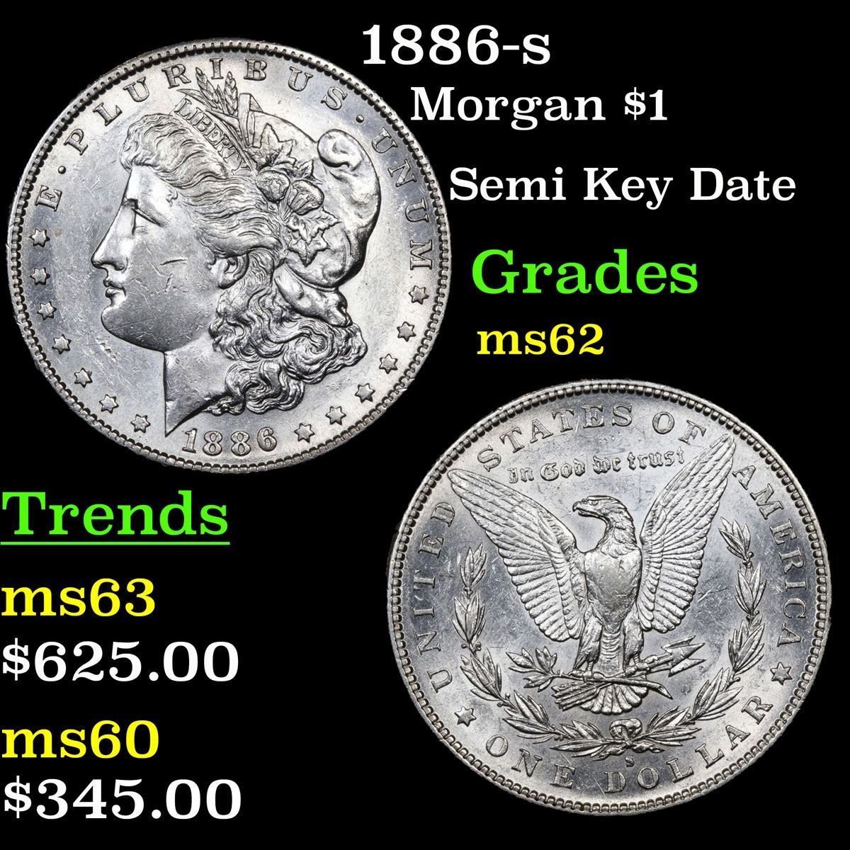 1886-s Semi Key Date . Morgan Dollar $1 Grades Select Unc.