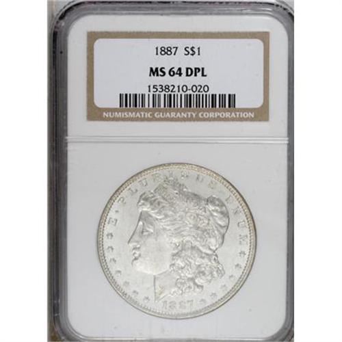 <B>1887 $1 MS64 Deep Mirror Prooflike NGC.</B></I> NGC Census: (390/122). PCGS Population (323/194). Numismedia Wsl. Price for NGC/PCGS coin in MS64: $280. (#97173)<BR><BR><b>Shipping:</b> Coins & Currency (<a target="_blank" href="http://www.heritageauctions.com/common/shipping.php">view shipping information</a>)