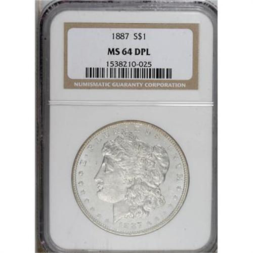 <B>1887 $1 MS64 Deep Mirror Prooflike NGC.</B></I> NGC Census: (390/122). PCGS Population (323/194). Numismedia Wsl. Price for NGC/PCGS coin in MS64: $280. (#97173)<BR><BR><b>Shipping:</b> Coins & Currency (<a target="_blank" href="http://www.heritageauctions.com/common/shipping.php">view shipping information</a>)