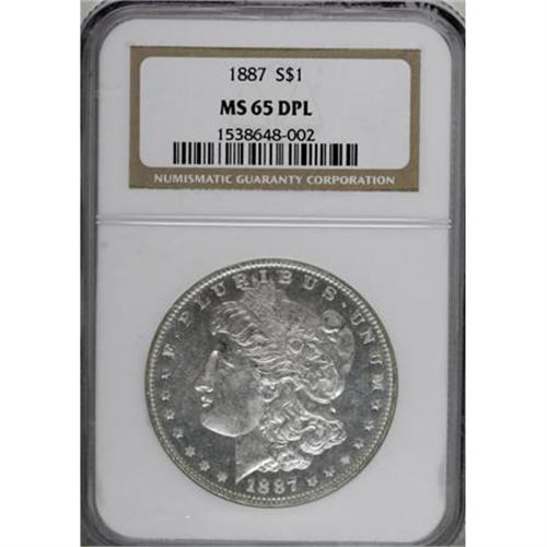 <B>1887 $1 MS65 Deep Mirror Prooflike NGC.</B></I> NGC Census: (110/12). PCGS Population (164/30). Numismedia Wsl. Price for NGC/PCGS coin in MS65: $620. (#97173)<BR><BR><b>Shipping:</b> Coins & Currency (<a target="_blank" href="http://www.heritageauctions.com/common/shipping.php">view shipping information</a>)