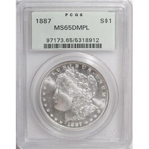 <B>1887 $1 MS65 Deep Mirror Prooflike PCGS.</B></I> PCGS Population (164/30). NGC Census: (112/12). Numismedia Wsl. Price for NGC/PCGS coin in MS65: $620. (#97173)<BR><BR><b>Shipping:</b> Coins & Currency (<a target="_blank" href="http://www.heritageauctions.com/common/shipping.php">view shipping information</a>)
