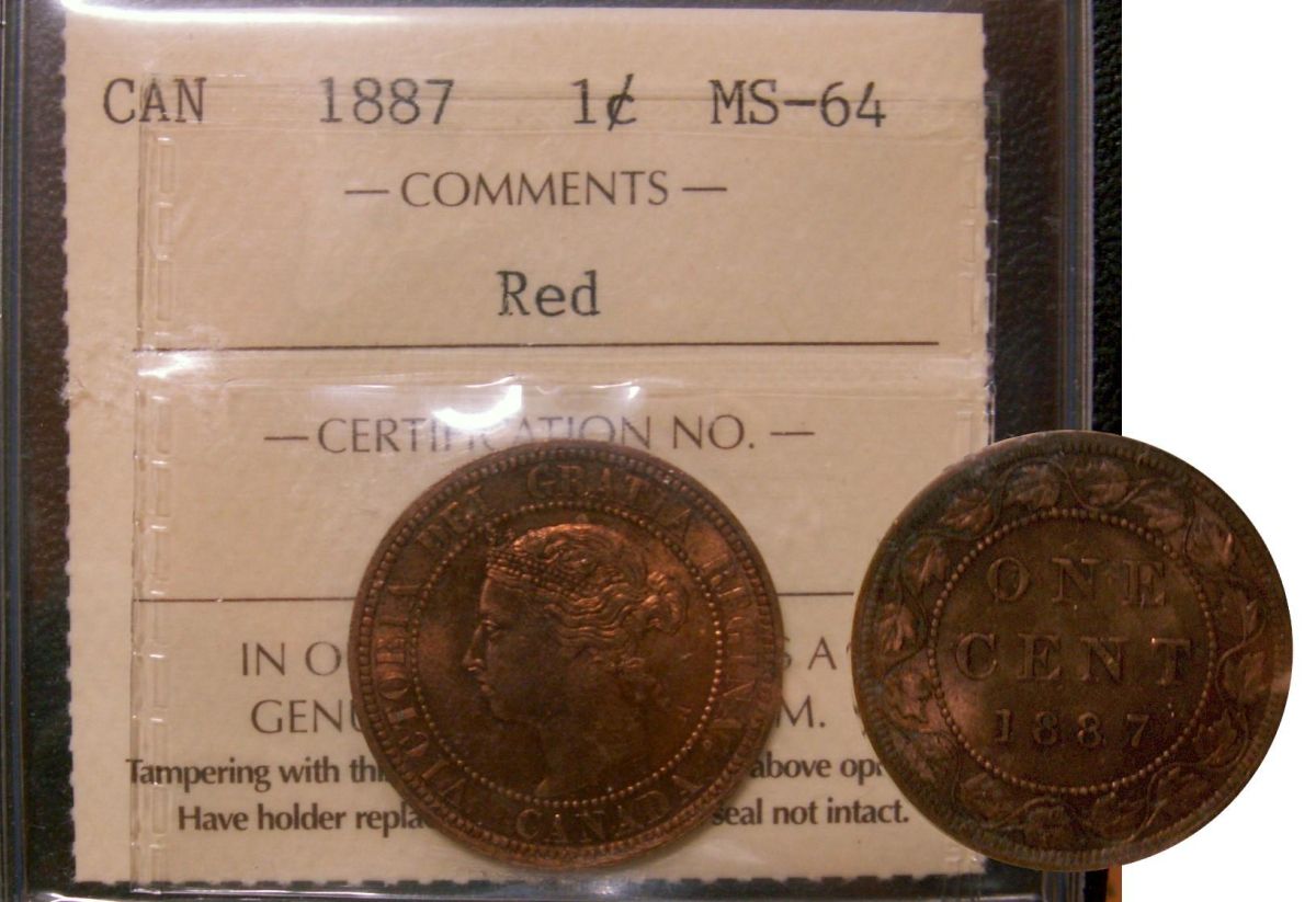1887 1¢ ICCS MS64RD. 70% Rd. Wine red example.