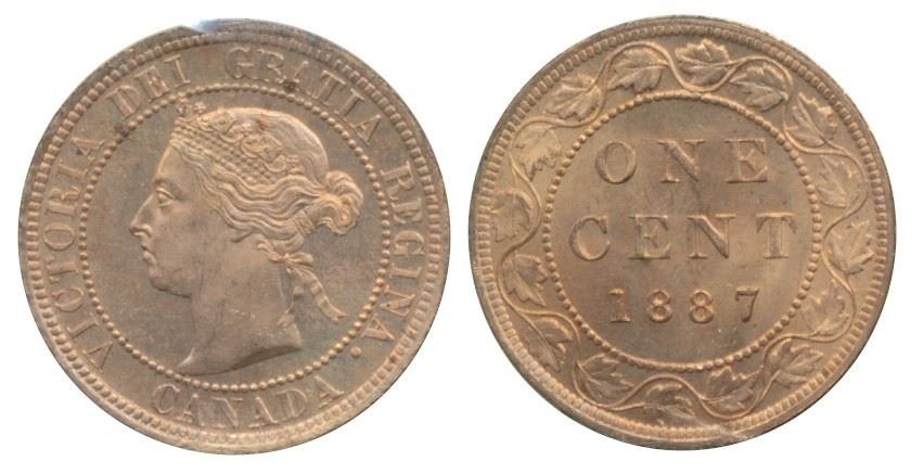 1887 1¢ ICCS MS65RD. Gem 100% red and gold issue with attractive Cameo touch. Lovely type coin.