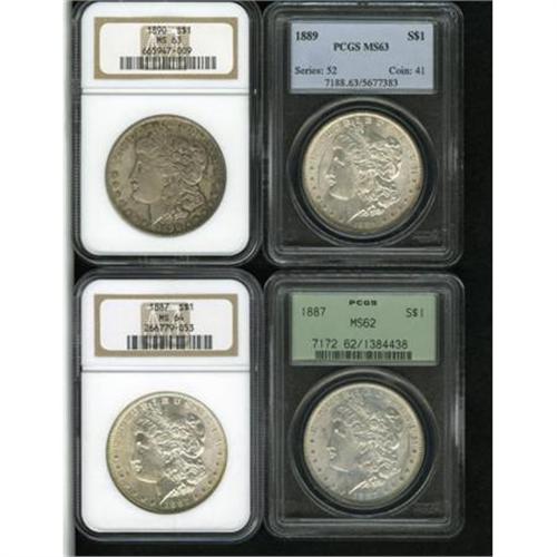 <B>1887 MS62 PCGS; 1887 MS64 NGC; 1889 MS63 PCGS; 1890 MS63 NGC.<BR></B></I><I>From The Diamond Head Collection.</B></I><BR><BR><B>Coin Engraver:</B> George T. Morgan<BR><BR><b>Shipping:</b> Coins & Currency (<a target="_blank" href="http://www.heritageauctions.com/common/shipping.php">view shipping information</a>\)