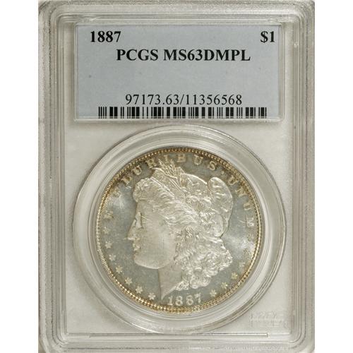 1887 $1 MS63 Deep Mirror Prooflike PCGS. PCGS Popu