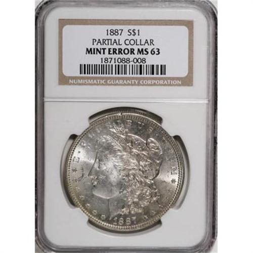 <B>1887 $1 Morgan Dollar--Partial Collar--MS63 NGC.</B></I> <BR><BR><B>Coin Engraver:</B> George T. Morgan<BR><BR><b>Shipping:</b> Coins & Currency (<a target="_blank" href="http://www.heritageauctions.com/common/shipping.php">view shipping information</a>)