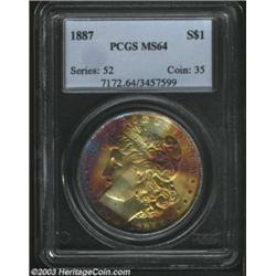 <TABLE cellSpacing=0 cellPadding=0 width="100%" bgColor=#000000 border=0><TBODY><TR><TD width="100%"><TABLE cellSpacing=1 cellPadding=3 width="100%" border=0><TBODY><TR><TD width="100%" bgColor=#79735c><FONT face=arial color=#ffffff size=3><B>Description</B> </FONT></TD></TR><TR><TD width="100%" bgColor=#ffffff><FONT face=arial size=2><B>1887 $1 MS64 PCGS.</B></I> Vivid electric-blue, ruby-red, and gold patina embraces the obverse, while the reverse is brilliant. The obverse is well preserved, while the reverse field has a few faint luster grazes. </FONT></TD></TR></TBODY></TABLE></TD></TR></TBODY></TABLE><BR><A name=PricesRealized></A><TABLE cellSpacing=0 cellPadding=0 width="100%" bgColor=#000000 border=0><TBODY><TR><TD width="100%"><TABLE cellSpacing=1 cellPadding=3 width="100%" border=0><TBODY><TR><TD width="100%" bgColor=#79735c><A name=PR><FONT face=arial color=#ffffff size=3><B>Previous Prices from Heritage Auctions</B> </FONT></A></TD></TR><TR><TD bgColor=#f6f6ed><TABLE cellSpacing=0 cellPadding=0 width="100%" border=1><TBODY><TR><TD align=middle width="33%"><B>Date</B></TD><TD align=middle width="33%"><B>Service</B></TD><TD align=middle width="33%"><B>Price</B></TD></TR><TR bgColor=whitesmoke><TD width="33%"><B>04/01/2003</B></TD><TD width="33%">NGC</TD><TD width="33%">$34.50</TD></TR><TR bgColor=whitesmoke><TD width="33%"><B>03/01/2003</B></TD><TD width="33%">NGC</TD><TD width="33%">$126.50</TD></TR><TR bgColor=whitesmoke><TD width="33%"><B>06/24/2003</B></TD><TD width="33%">NGC</TD><TD width="33%">$33.35</TD></TR><TR bgColor=whitesmoke><TD width="33%"><B>06/24/2003</B></TD><TD width="33%">NGC</TD><TD width="33%">$34.50</TD></TR><TR bgColor=whitesmoke><TD width="33%"><B>06/24/2003</B></TD><TD width="33%">NGC</TD><TD width="33%">$60.95</TD></TR><TR bgColor=whitesmoke><TD width="33%"><B>06/17/2003</B></TD><TD width="33%">NGC</TD><TD width="33%">$34.50</TD></TR><TR bgColor=whitesmoke><TD width="33%"><B>08/12/2003</B></TD><TD width="33%">ANACS</TD><TD width="33%">$29.90</TD></TR><TR bgColor=whitesmoke><TD width="33%"><B>01/09/2001</B></TD><TD width="33%">ANACS</TD><TD width="33%">$38.00</TD></TR><TR bgColor=whitesmoke><TD width="33%"><B>07/17/2001</B></TD><TD width="33%">ANACS</TD><TD width="33%">$33.00</TD></TR><TR bgColor=whitesmoke><TD width="33%"><B>07/17/2001</B></TD><TD width="33%">ANACS</TD><TD width="33%">$39.00</TD></TR><TR bgColor=whitesmoke><TD width="33%"><B>07/04/2000</B></TD><TD width="33%">ANACS</TD><TD width="33%">$90.00</TD></TR><TR bgColor=whitesmoke><TD width="33%"><B>03/21/2000</B></TD><TD width="33%">ANACS</TD><TD width="33%">$90.00</TD></TR><TR bgColor=whitesmoke><TD width="33%"><B>01/07/1998</B></TD><TD width="33%">ANACS</TD><TD width="33%">$26.40</TD></TR><TR bgColor=whitesmoke><TD width="33%"><B>05/27/2003</B></TD><TD width="33%">ANACS</TD><TD width="33%">$46.00</TD></TR><TR bgColor=whitesmoke><TD width="33%"><B>07/01/2003</B></TD><TD width="33%">ANACS</TD><TD width="33%">$74.75</TD></TR><TR bgColor=whitesmoke><TD width="33%"><B>03/01/2003</B></TD><TD width="33%">ANACS</TD><TD width="33%">$69.00</TD></TR><TR bgColor=whitesmoke><TD width="33%"><B>08/12/2003</B></TD><TD width="33%">PCGS</TD><TD width="33%">$39.10</TD></TR><TR bgColor=whitesmoke><TD width="33%"><B>08/12/2003</B></TD><TD width="33%">PCGS</TD><TD width="33%">$35.65</TD></TR><TR bgColor=whitesmoke><TD width="33%"><B>08/12/2003</B></TD><TD width="33%">PCGS</TD><TD width="33%">$33.35</TD></TR><TR bgColor=whitesmoke><TD width="33%"><B>08/12/2003</B></TD><TD width="33%">PCGS</TD><TD width="33%">$34.50</TD></TR><TR bgColor=whitesmoke><TD width="33%"><B>03/25/2003</B></TD><TD width="33%">PCGS</TD><TD width="33%">$48.30</TD></TR><TR bgColor=whitesmoke><TD width="33%"><B>05/06/2003</B></TD><TD width="33%">PCGS</TD><TD width="33%">$32.20</TD></TR><TR bgColor=whitesmoke><TD width="33%"><B>06/03/2003</B></TD><TD width="33%">PCGS</TD><TD width="33%">$37.95</TD></TR><TR bgColor=whitesmoke><TD width="33%"><B>06/03/2003</B></TD><TD width="33%">PCGS</TD><TD width="33%">$34.50</TD></TR><TR bgColor=whitesmoke><TD width="33%"><B>06/03/2003</B></TD><TD width="33%">PCGS</TD><TD width="33%">$35.65</TD></TR><TR bgColor=whitesmoke><TD width="33%"><B>08/06/2003</B></TD><TD width="33%">PCGS</TD><TD width="33%">$75.90</TD></TR><TR bgColor=whitesmoke><TD width="33%"><B>12/10/2002</B></TD><TD width="33%">PCGS</TD><TD width="33%">$57.50</TD></TR><TR bgColor=whitesmoke><TD width="33%"><B>09/17/2002</B></TD><TD width="33%">PCGS</TD><TD width="33%">$65.55</TD></TR><TR bgColor=whitesmoke><TD width="33%"><B>04/23/2002</B></TD><TD width="33%">PCGS</TD><TD width="33%">$40.25</TD></TR><TR bgColor=whitesmoke><TD width="33%"><B>04/28/2002</B></TD><TD width="33%">PCGS</TD><TD width="33%">$46.00</TD></TR><TR bgColor=whitesmoke><TD width="33%"><B>04/28/2002</B></TD><TD width="33%">PCGS</TD><TD width="33%">$41.40</TD></TR><TR bgColor=whitesmoke><TD width="33%"><B>04/28/2002</B></TD><TD width="33%">PCGS</TD><TD width="33%">$42.55</TD></TR><TR bgColor=whitesmoke><TD width="33%"><B>04/16/2002</B></TD><TD width="33%">PCGS</TD><TD width="33%">$35.65</TD></TR><TR bgColor=whitesmoke><TD width="33%"><B>02/19/2002</B></TD><TD width="33%">PCGS</TD><TD width="33%">$41.40</TD></TR><TR bgColor=whitesmoke><TD width="33%"><B>02/19/2002</B></TD><TD width="33%">PCGS</TD><TD width="33%">$49.45</TD></TR><TR bgColor=whitesmoke><TD width="33%"><B>05/23/2000</B></TD><TD width="33%">PCGS</TD><TD width="33%">$35.00</TD></TR><TR bgColor=whitesmoke><TD width="33%"><B>07/25/2000</B></TD><TD width="33%">PCGS</TD><TD width="33%">$60.00</TD></TR><TR bgColor=whitesmoke><TD width="33%"><B>06/02/2001</B></TD><TD width="33%">PCGS</TD><TD width="33%">$40.25</TD></TR><TR bgColor=whitesmoke><TD width="33%"><B>06/02/2001</B></TD><TD width="33%">PCGS</TD><TD width="33%">$31.05</TD></TR><TR bgColor=whitesmoke><TD width="33%"><B>02/03/1993</B></TD><TD width="33%">PCGS</TD><TD width="33%">$40.70</TD></TR><TR bgColor=whitesmoke><TD width="33%"><B>12/19/2000</B></TD><TD width="33%">