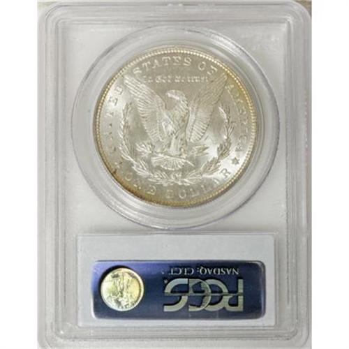 <B>1887 $1 MS65 PCGS.</B></I> Vivid apple-green, fire-red, and lemon consume the obverse. The reverse is brilliant save for peripheral wisps of honey-gold. The fields are remarkably unabraded, and contact is limited to Liberty's cheek and chin.<BR><BR><B>Coin Engraver:</B> George T. Morgan<BR><BR><b>Shipping:</b> Coins & Currency (<a target="_blank" href="http://www.heritageauctions.com/common/shipping.php">view shipping information</a>)
