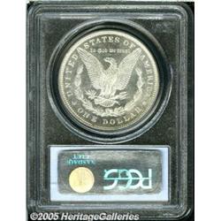 <B>1887<img border='0' src='http://www.heritagecoins.com/images/star.gif' width=10 height=10>$1 MS66 Prooflike PCGS.</B></I> Mirrored fields offer a mild contrast with the sharply struck design elements. A wisp of light tan color is noted on Liberty's cheek, the remaining surfaces being untoned. There are no significant marks to report.