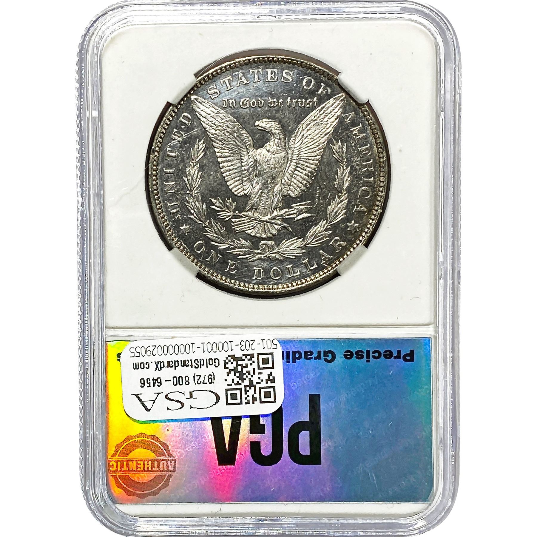 e. Coins sold referencing a third-party grading service are sold “AS IS” without any express or implied warranty, except for a guarantee by GSA that they are genuine. Removal or alteration of the holder, voids all of Bidder’s claims concerning that Product. Certain warranties may be available from the grading services and Bidders are referred to them for further details: Numismatic Guaranty Corporation (NGC), PO Box 4776, Sarasota, FL 34230, www.ngccoin.com/services/writtenguarantee.asp; Professional Coin Grading Services (PCGS), PO Box 9458, Newport Beach, CA 92658, www.pcgs.com/guarantee.html; ANACS, 6555 S. Kenton St., Ste. 303, Englewood, CO 80111; and Independent Coin Grading Co. (ICG), 7901 East Bellview, Ave., Suite 50, Englewood, CO 80111.