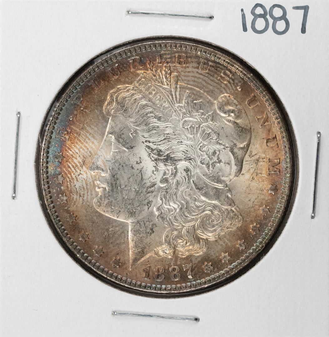 One 1887 $1 Morgan Silver Dollar Coin Amazing Toning.
