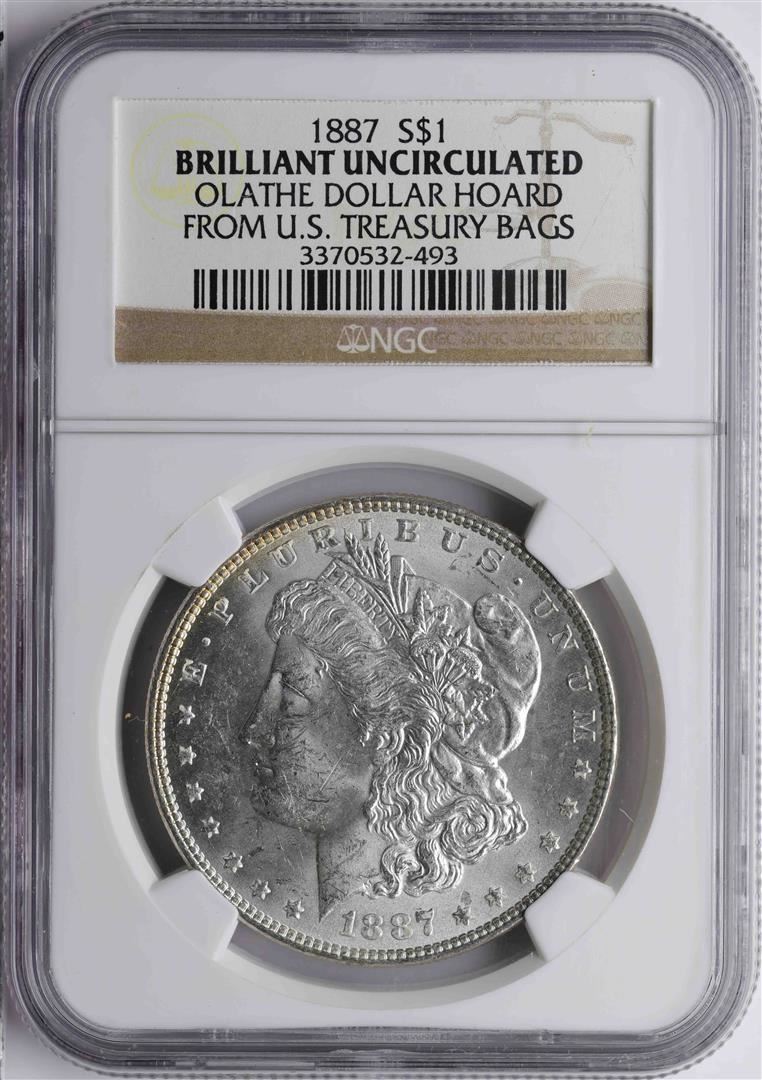 One 1887 $1 Morgan Silver Dollar Coin NGC Brilliant Uncirculated. NGC Certified.