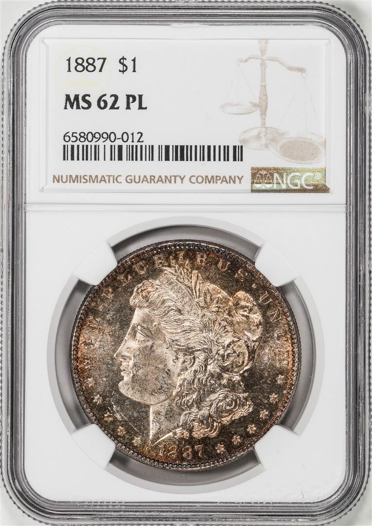 One 1887 $1 Morgan Silver Dollar Coin NGC MS62PL Nice Toning. NGC Certified.