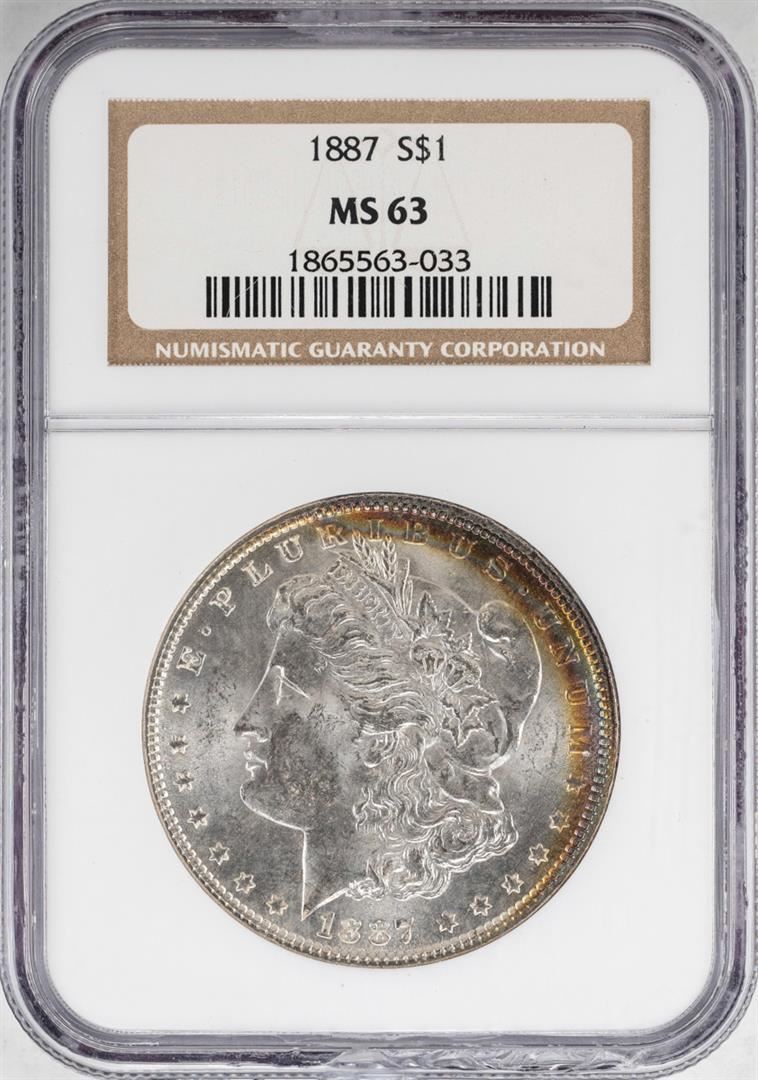 One 1887 $1 Morgan Silver Dollar Coin NGC MS63 Amazing Toning. NGC Certified.