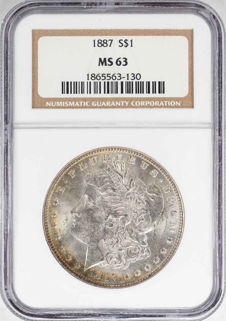 One 1887 $1 Morgan Silver Dollar Coin NGC MS63 Nice Toning. NGC Certified.