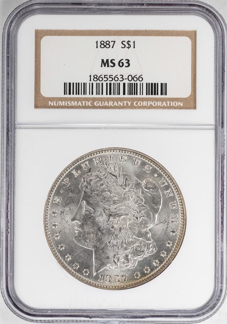 One 1887 $1 Morgan Silver Dollar Coin NGC MS63 Nice Toning. NGC Certified.