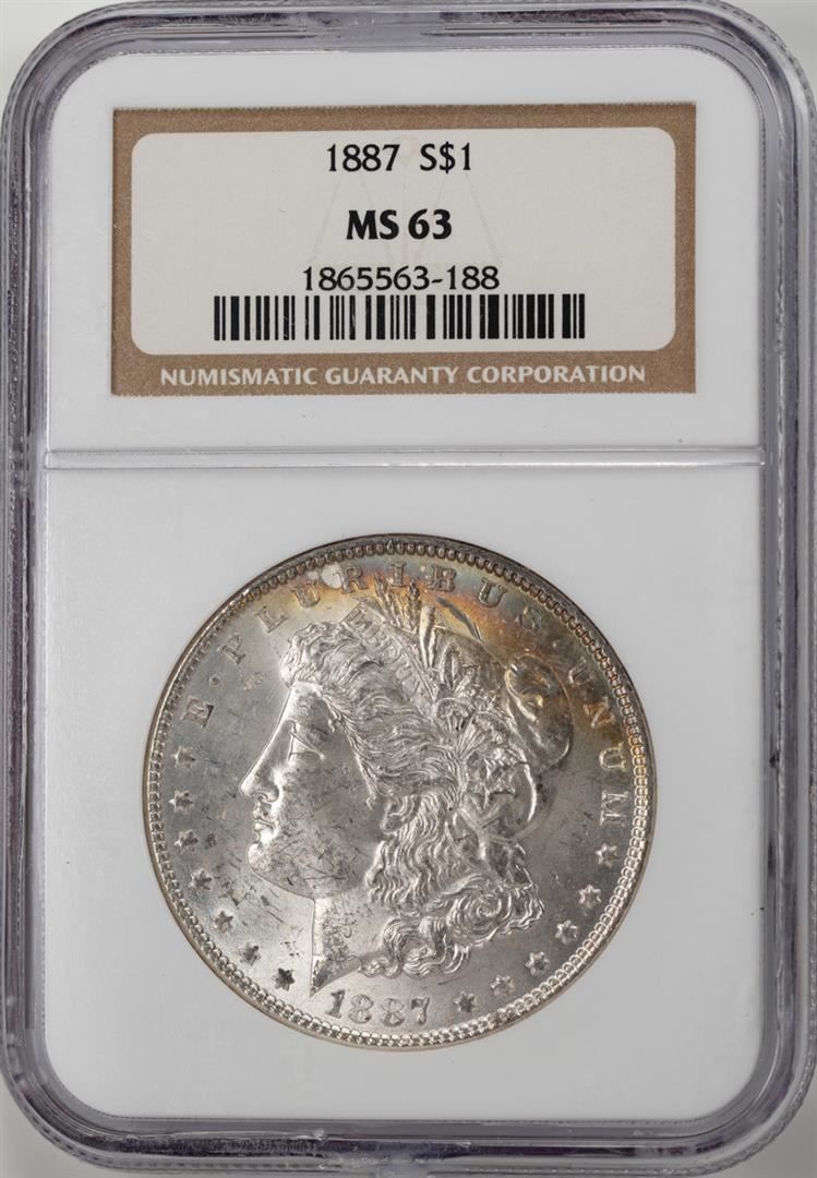 One 1887 $1 Morgan Silver Dollar Coin NGC MS63 Nice Toning. NGC Certified.