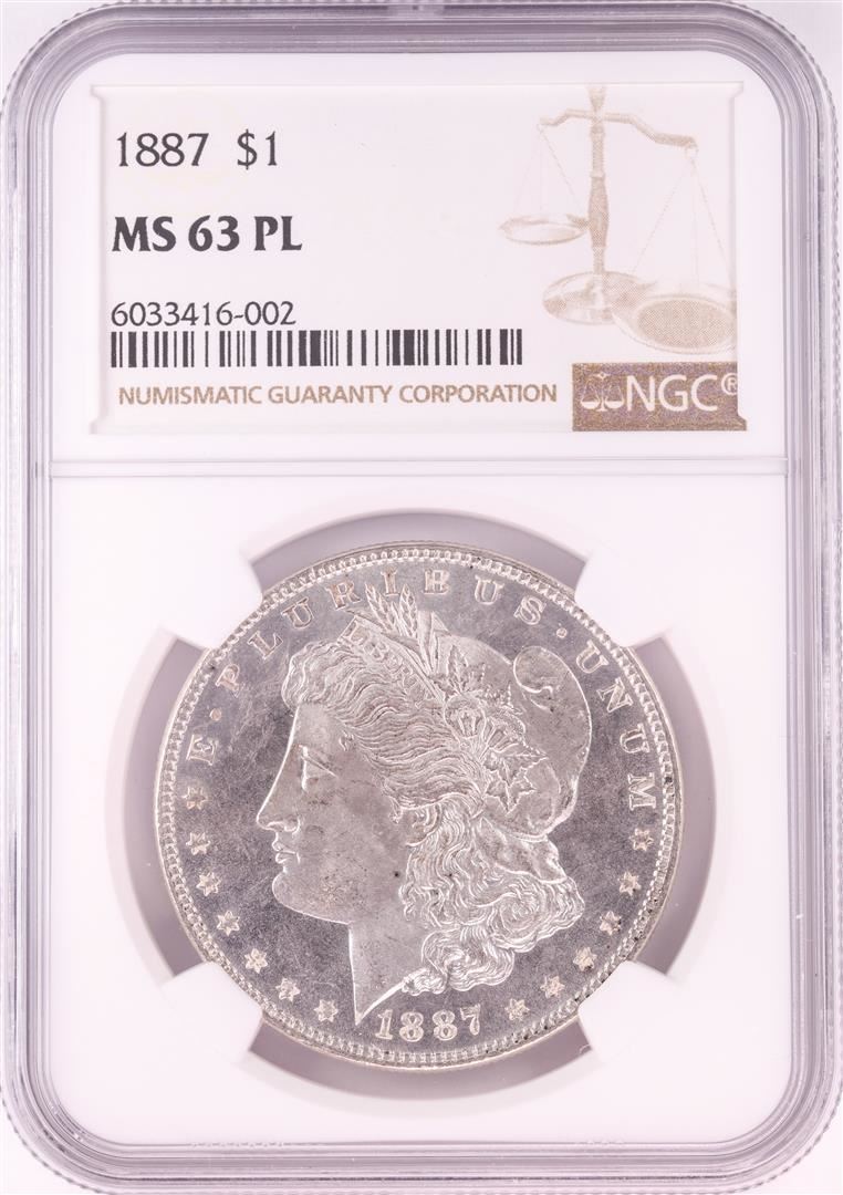 One 1887 $1 Morgan Silver Dollar Coin NGC MS63PL. NGC Certified.