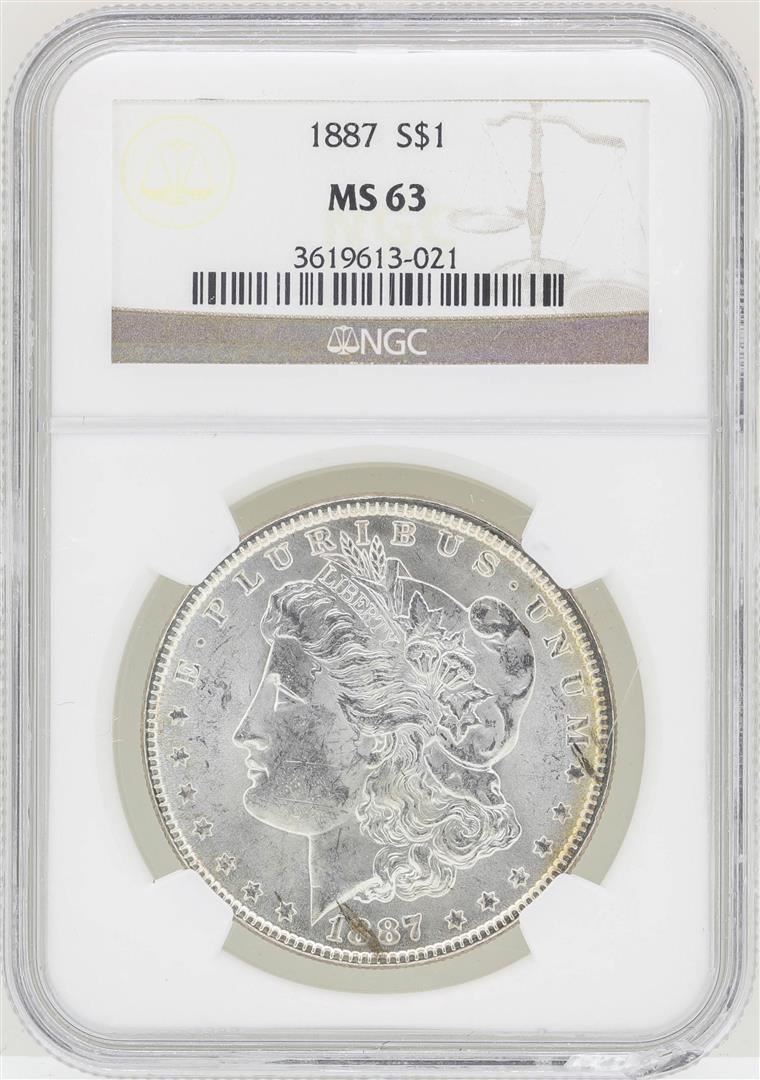 One 1887 $1 Morgan Silver Dollar Coin NGC MS63. NGC Certified.