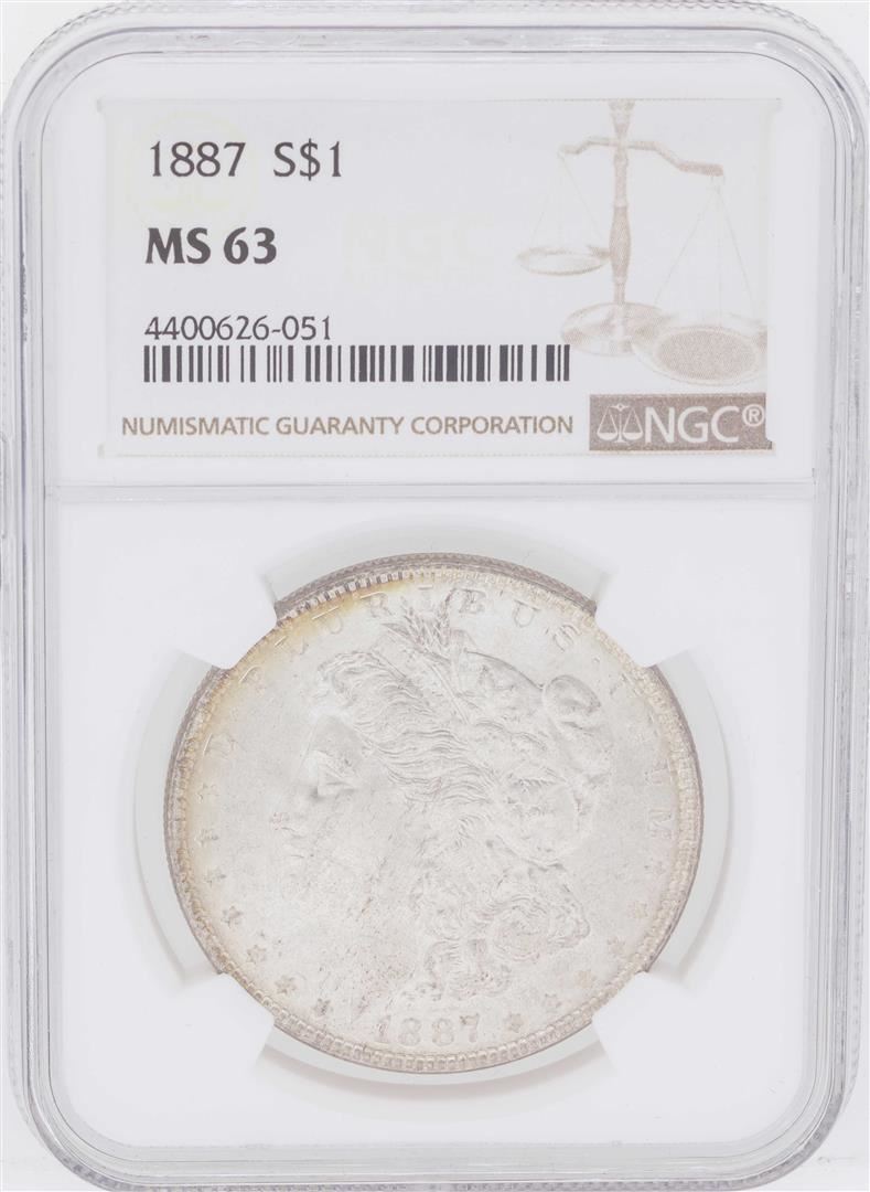 One 1887 $1 Morgan Silver Dollar Coin NGC MS63. NGC Certified.