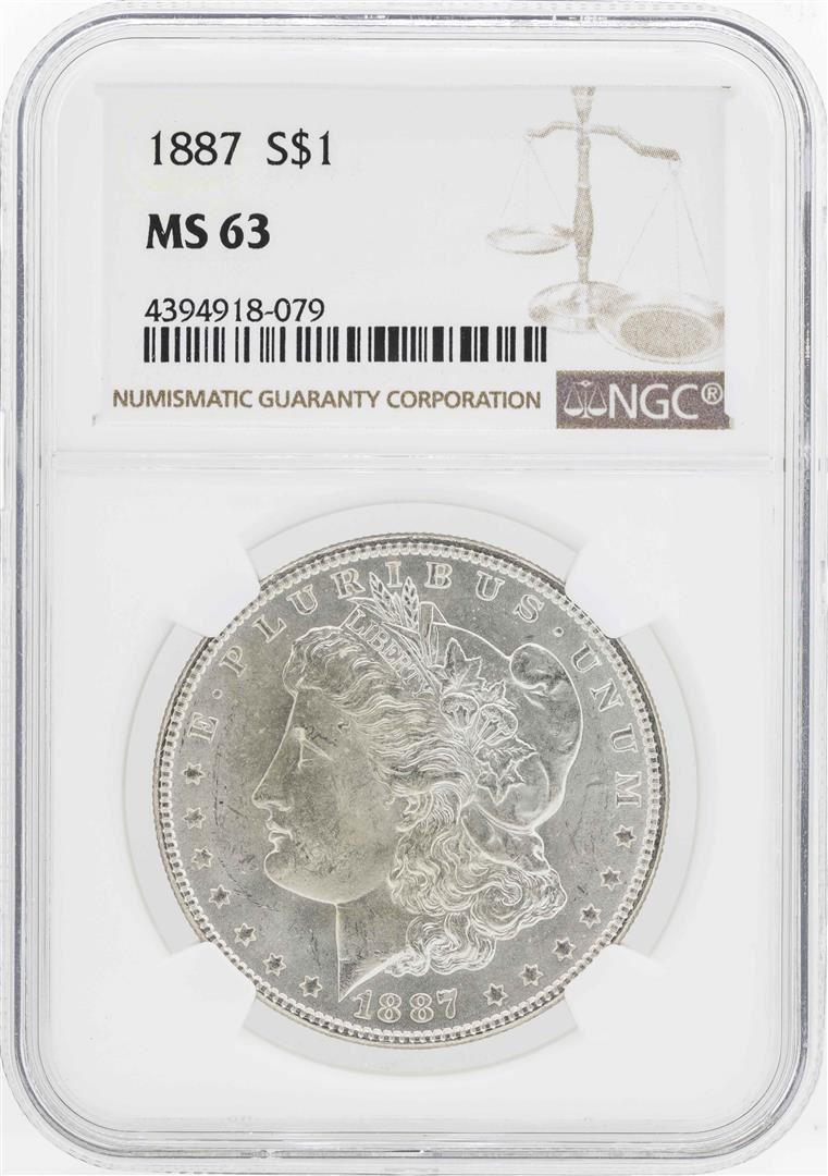 One 1887 $1 Morgan Silver Dollar Coin NGC MS63. NGC Certified.