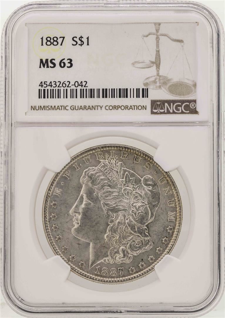 One 1887 $1 Morgan Silver Dollar Coin NGC MS63. NGC Certified.