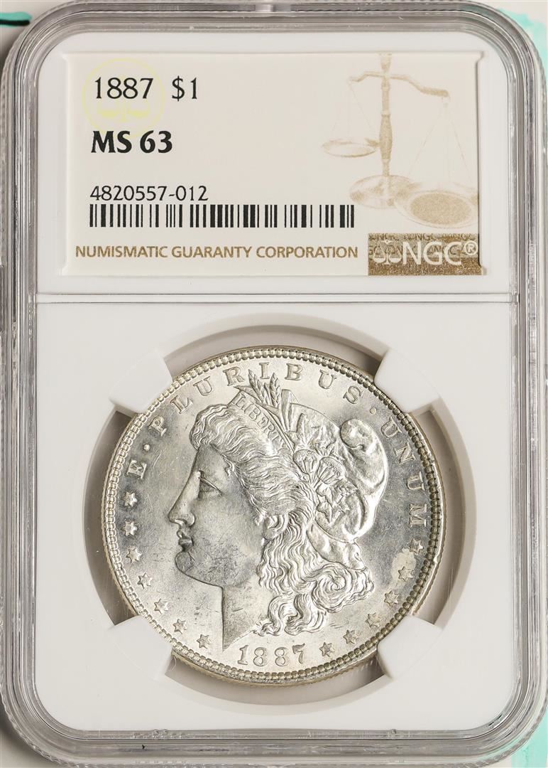 One 1887 $1 Morgan Silver Dollar Coin NGC MS63. NGC Certified.
