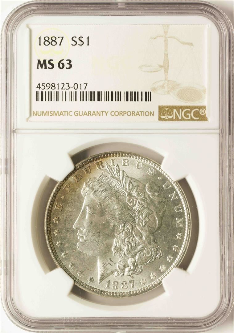 One 1887 $1 Morgan Silver Dollar Coin NGC MS63. NGC Certified.