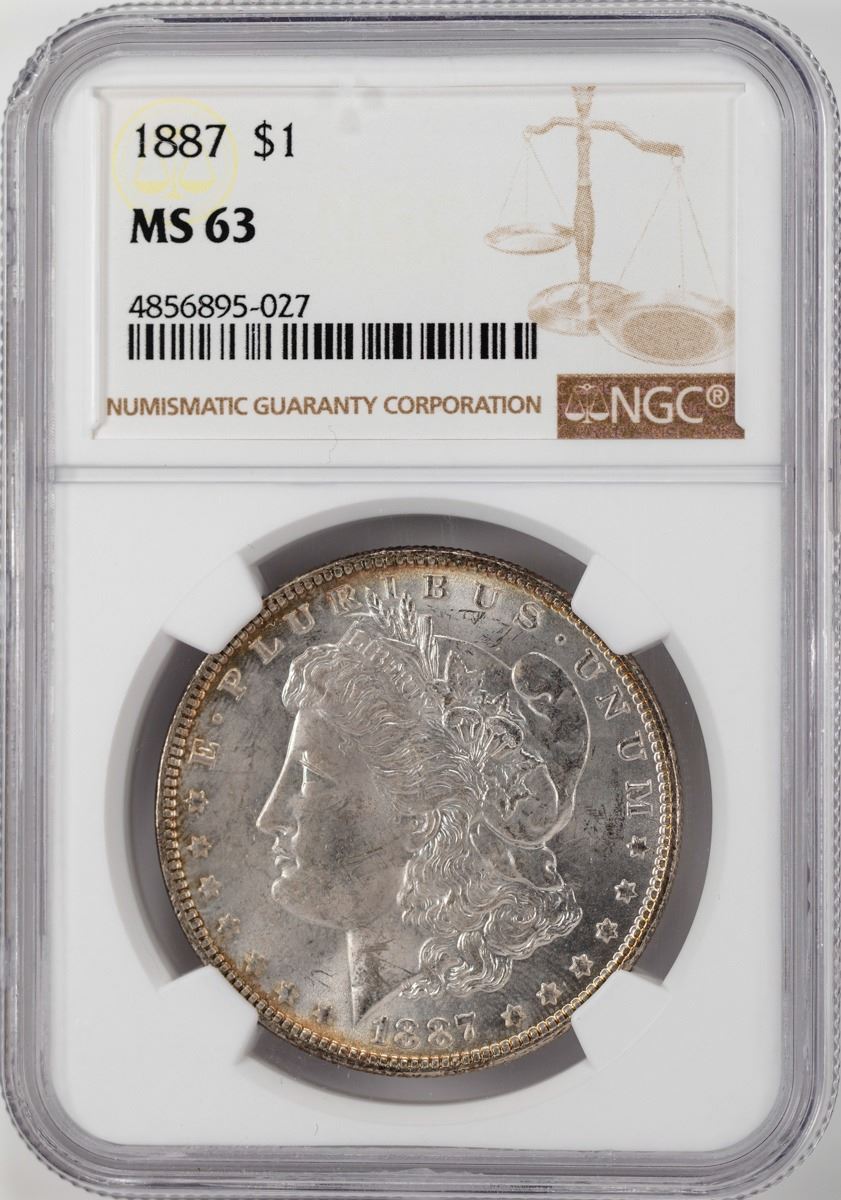 One 1887 $1 Morgan Silver Dollar Coin NGC MS63.