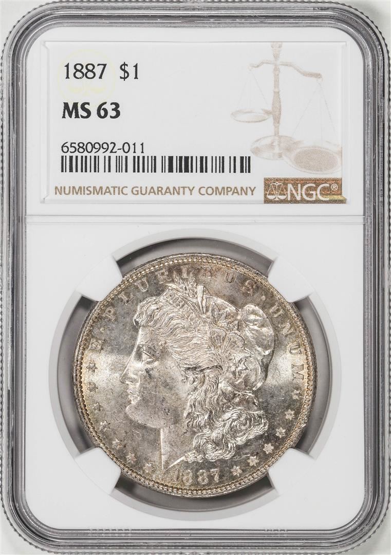One 1887 $1 Morgan Silver Dollar Coin NGC MS63. NGC Certified.