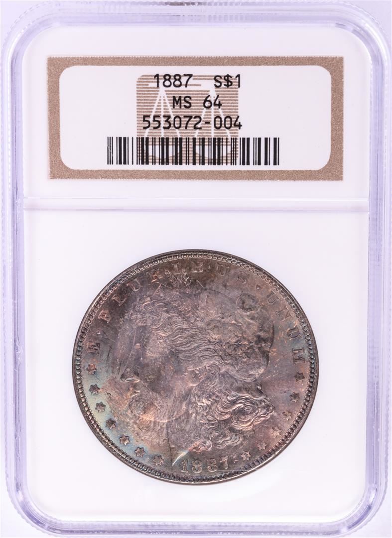 One 1887 $1 Morgan Silver Dollar Coin NGC MS64 Nice Toning. NGC Certified.