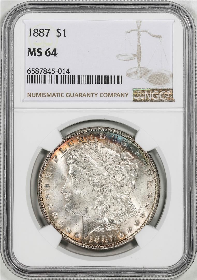 One 1887 $1 Morgan Silver Dollar Coin NGC MS64 Nice Toning. NGC Certified.