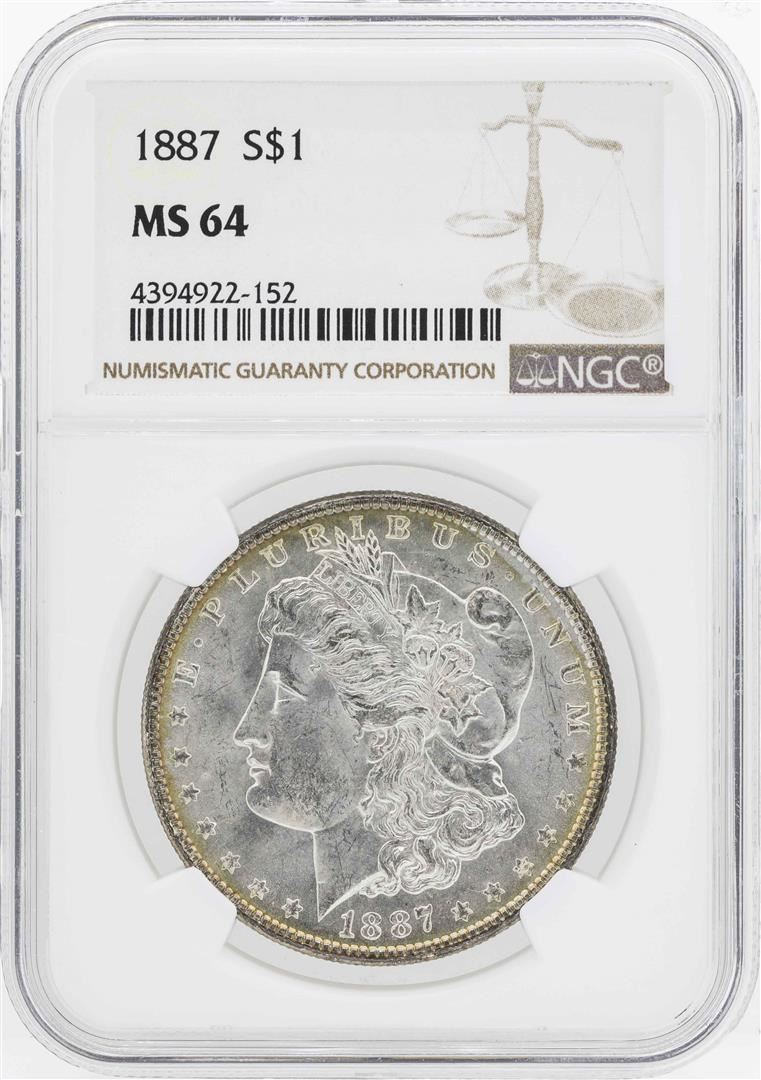 One 1887 $1 Morgan Silver Dollar Coin NGC MS64. NGC Certified.