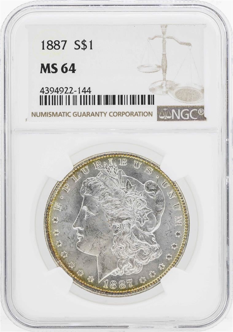 One 1887 $1 Morgan Silver Dollar Coin NGC MS64. NGC Certified.