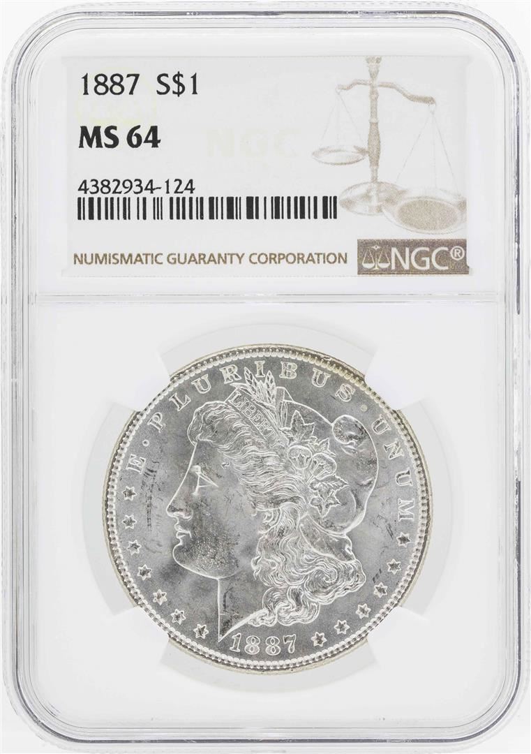 One 1887 $1 Morgan Silver Dollar Coin NGC MS64. NGC Certified.