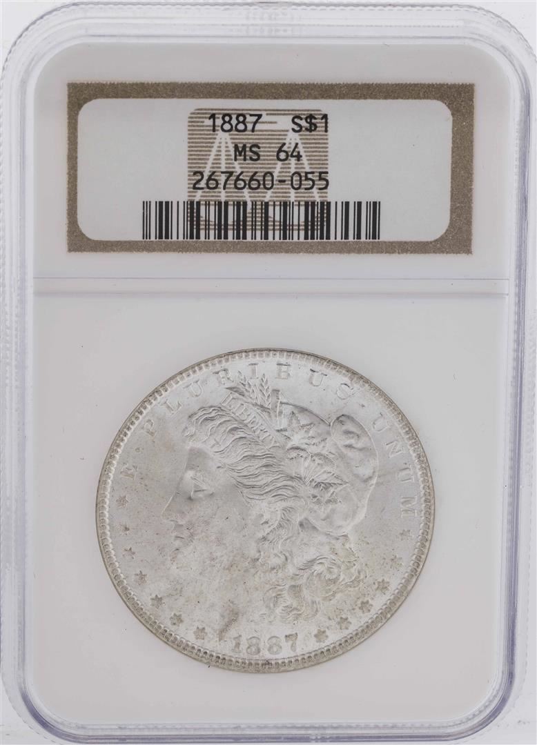 One 1887 $1 Morgan Silver Dollar Coin NGC MS64. NGC Certified.