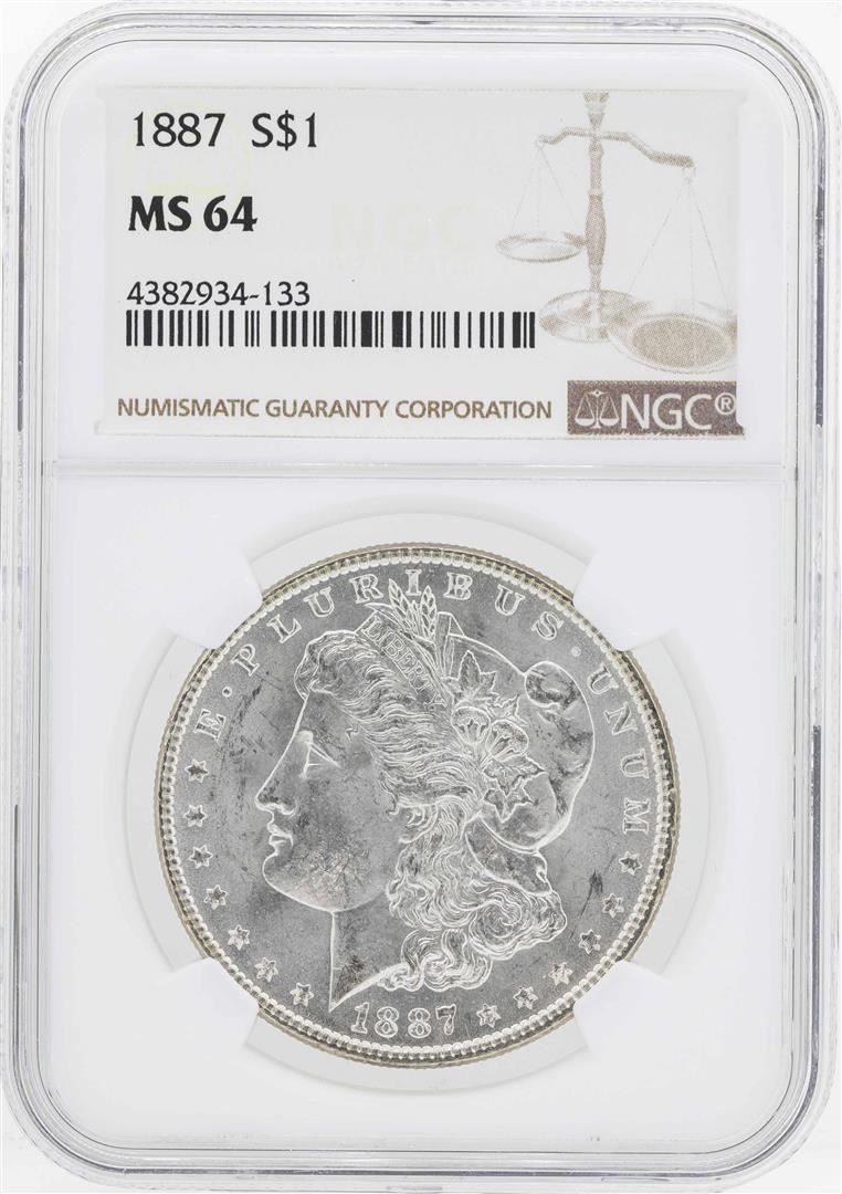 One 1887 $1 Morgan Silver Dollar Coin NGC MS64. NGC Certified.