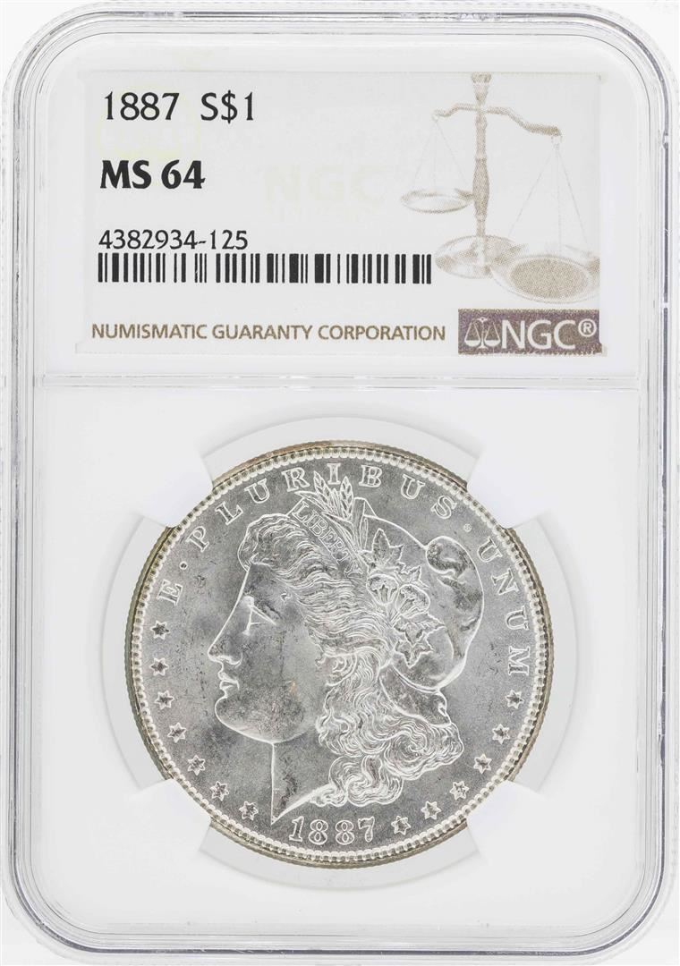 One 1887 $1 Morgan Silver Dollar Coin NGC MS64. NGC Certified.