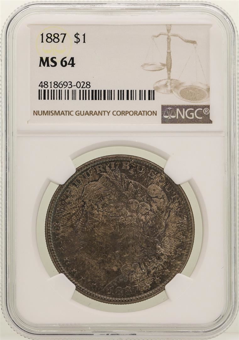 One 1887 $1 Morgan Silver Dollar Coin NGC MS64. NGC Certified.